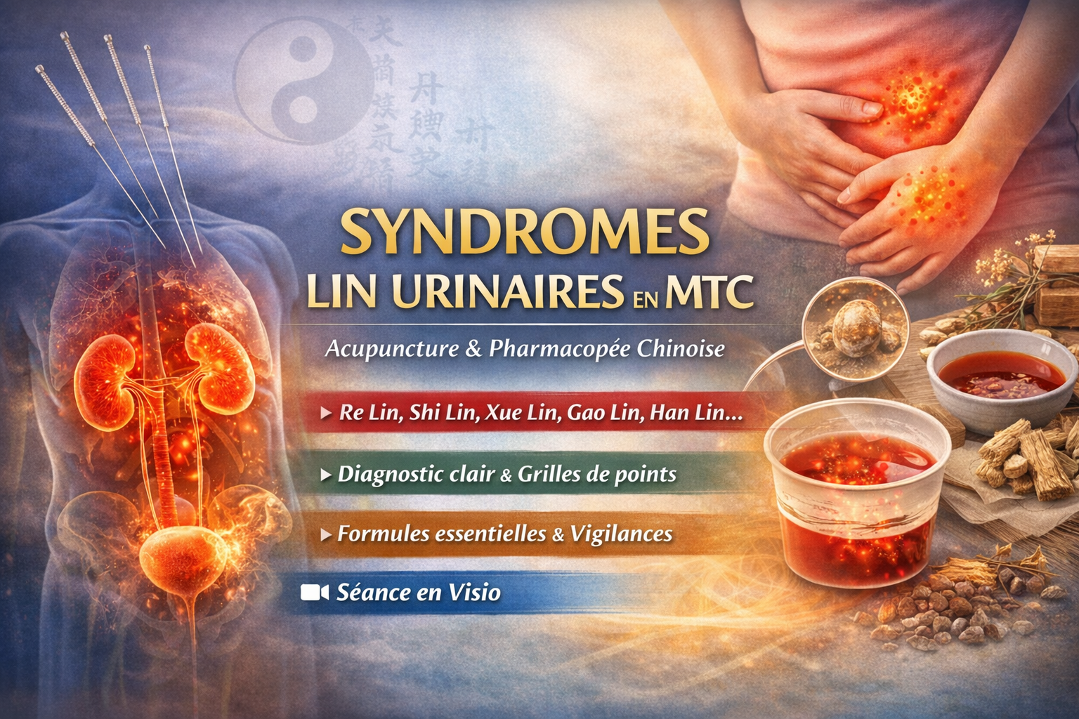 Les troubles urinaires sont parmi les motifs de consultation les plus fréquents : brûlures, pollakiurie, urgences mictionnelles, urines troubles, douleurs, récidives… En MTC, ces tableaux se regroupent sous les syndromes Lin (淋), dont la prise en charge exige une différenciation fine entre Chaleur/Froid, Humidité, Stagnation de Qi, Stase de Sang, Calculs, et vide de Rein/Rate dans les formes chroniques.