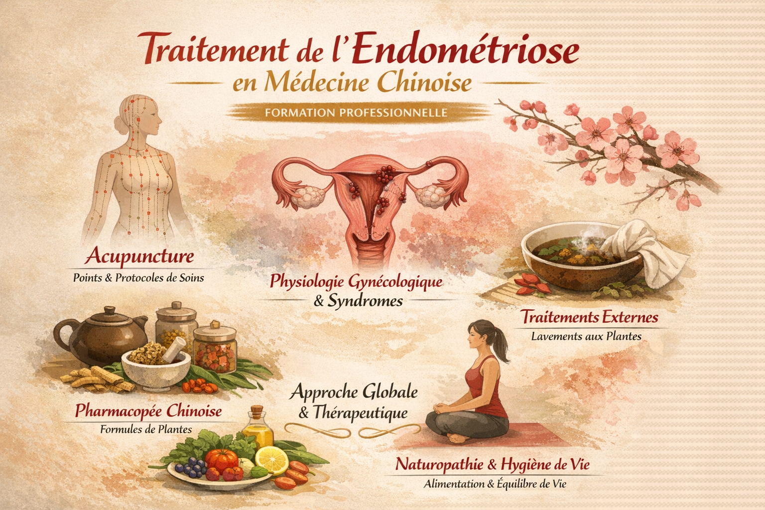 L’endométriose est une affection complexe, souvent douloureuse, dont l’impact sur la qualité de vie, la fertilité et l’équilibre émotionnel nécessite une prise en charge à la fois rigoureuse, individualisée et pluridisciplinaire. Cette formation propose une approche structurée du traitement de l’endométriose selon la Médecine Traditionnelle Chinoise (MTC), en s’appuyant sur l’étude de la physiologie gynécologique chinoise et sur des stratégies thérapeutiques concrètes, applicables en cabinet.